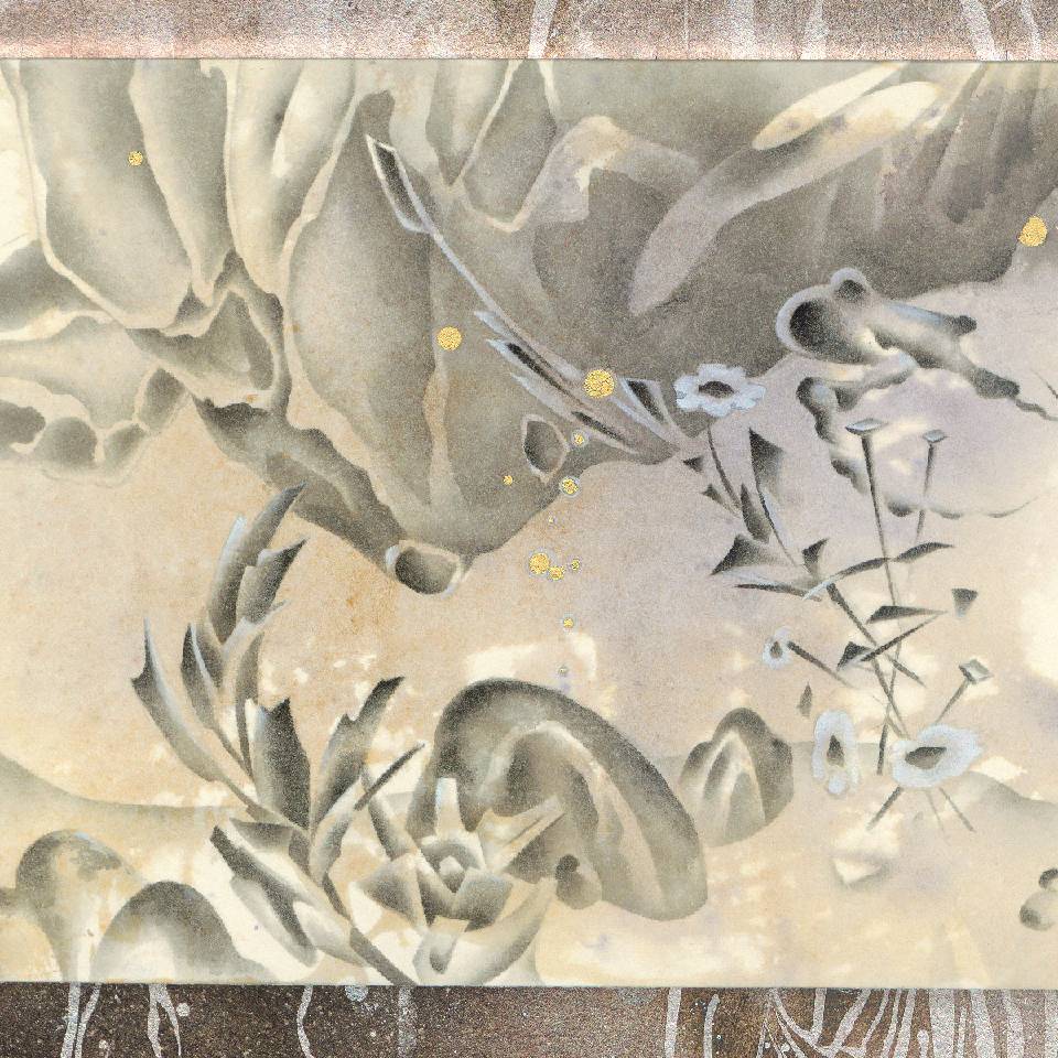 作品呈現出一種寧靜與冥想的環境,畫面中的柔和與綠意交織成一處處靜謐的避風港,鼓勵觀者靜心冥想,尋找內在的平和。水的流動象徵著情感的起伏,而庭園的靜謐則為反思和自我啟發提供了空間。深入探索情感的起伏與心靈的療癒,重新思索內在與自然之間的本質連結。