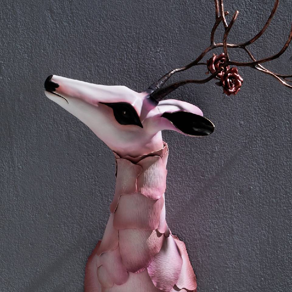 鹿與花的交織,展現自然與心靈的對話。《思華》低首內省,將盛放的華麗收進心底;《望語》仰首凝視,如在傾聽花語的呢喃。兩者一靜一動,一收一放,既獨立又呼應。藉由玫瑰的細膩與鹿的靈動,構築介於真實與幻想之間的詩意場域,邀請觀者在對望中感受情感的流動與自然的呼吸。