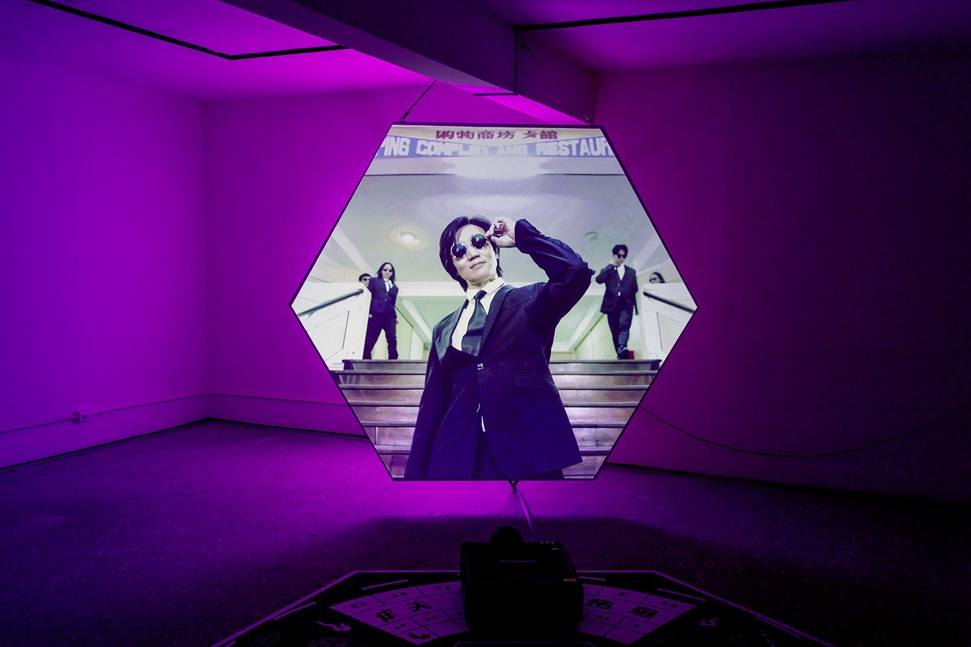 郭佩奇,《粉紅軍艦 I》,2023,AI錄像與空間裝置,尺寸依展場空間而定。圖 | 藝術家提供。