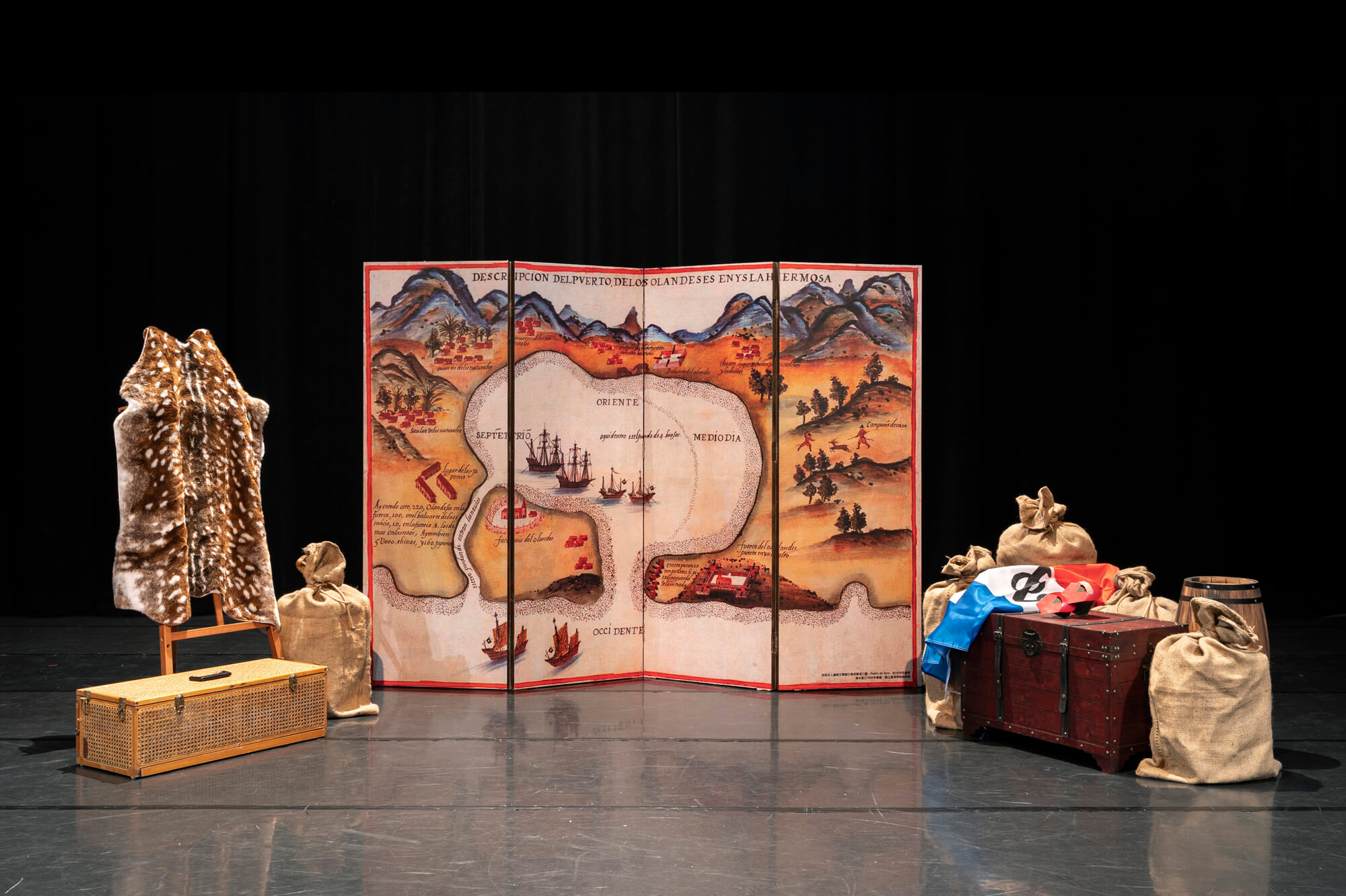 李立中,《Pontanus的日誌本11 大肚王國》,2025,講述表演(錄像回放)、書寫、油畫、攝影、舞台道具(展覽物件),尺寸依展場空間而定。圖 | 藝術家提供。