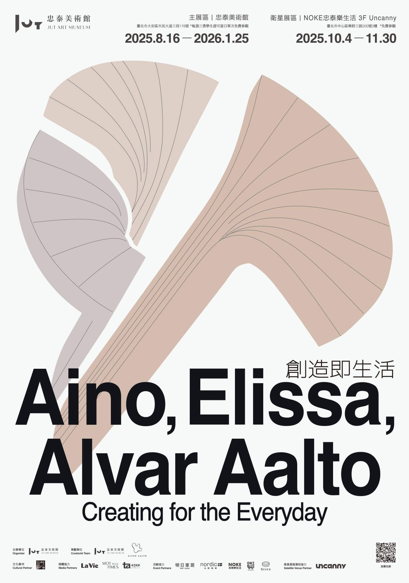 忠泰美術館今夏首度於臺灣推出芬蘭國寶級建築師大型回顧展《創造即生活──愛諾、艾莉莎與阿爾瓦.阿爾托》,自 8 月於美術館主展區開展以來廣受矚目。衛星展區即日起至11月30日止,在 NOKE 忠泰樂生活3樓 Uncanny 免費展出,進一步延伸探討展覽核心命題「創造即生活」。