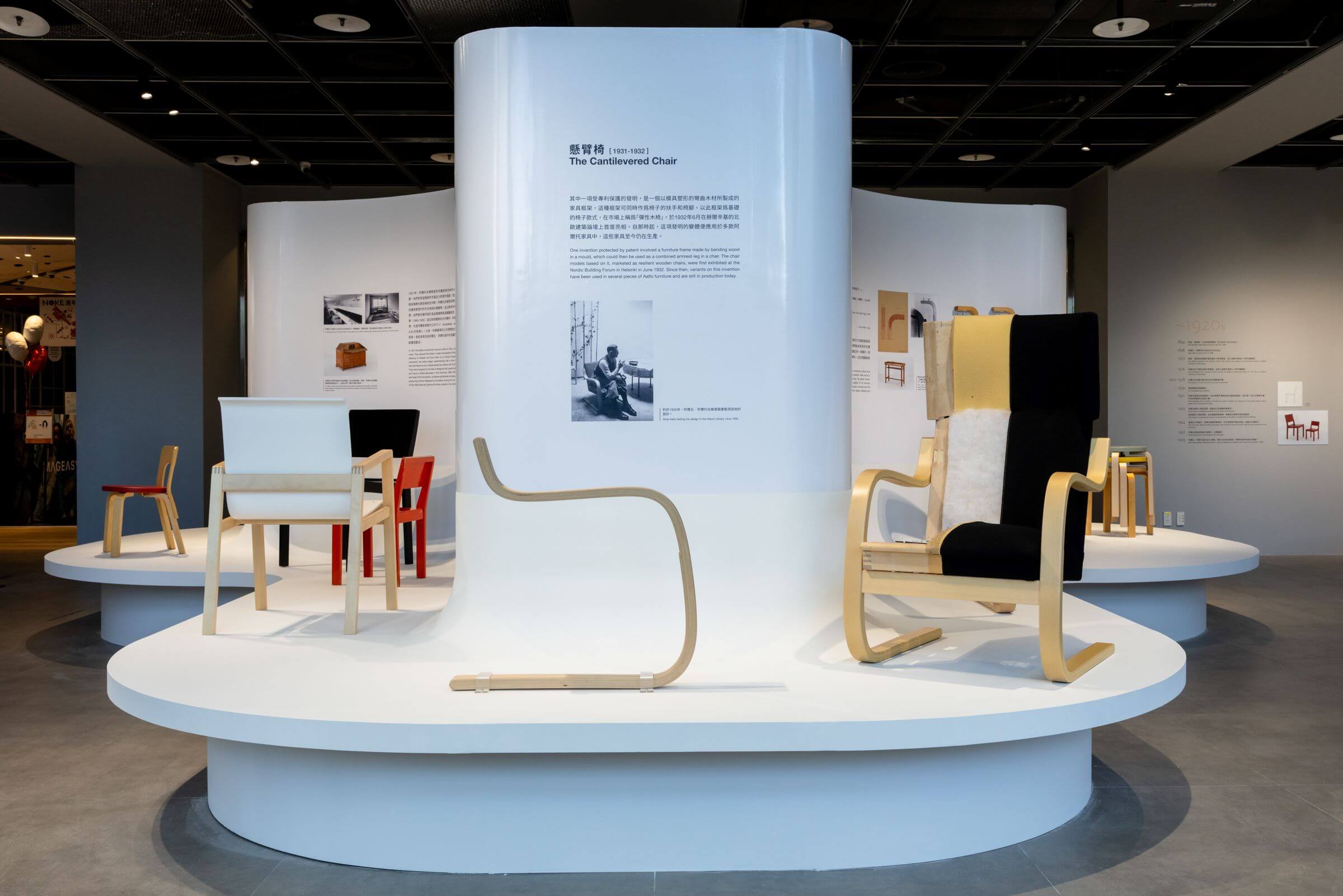 衛星展區聚焦阿爾托夫婦家具設計的實驗精神、專利技術與創新成果,並介紹其共同創立的設計品牌「Artek」。現場將展出多件經典作品與設計結構物件,包括 1930 年代突破曲木技術極限的懸臂椅(The Cantilevered Chair)以及被譽為「圓凳之王」的 60 號圓凳(Stool 60)等,帶領觀眾從家具與設計物件的尺度感受阿爾托夫婦如何將建築精神融入日常生活,並見證芬蘭現代設計跨越地域文化,延續發展近百年的雋永魅力。