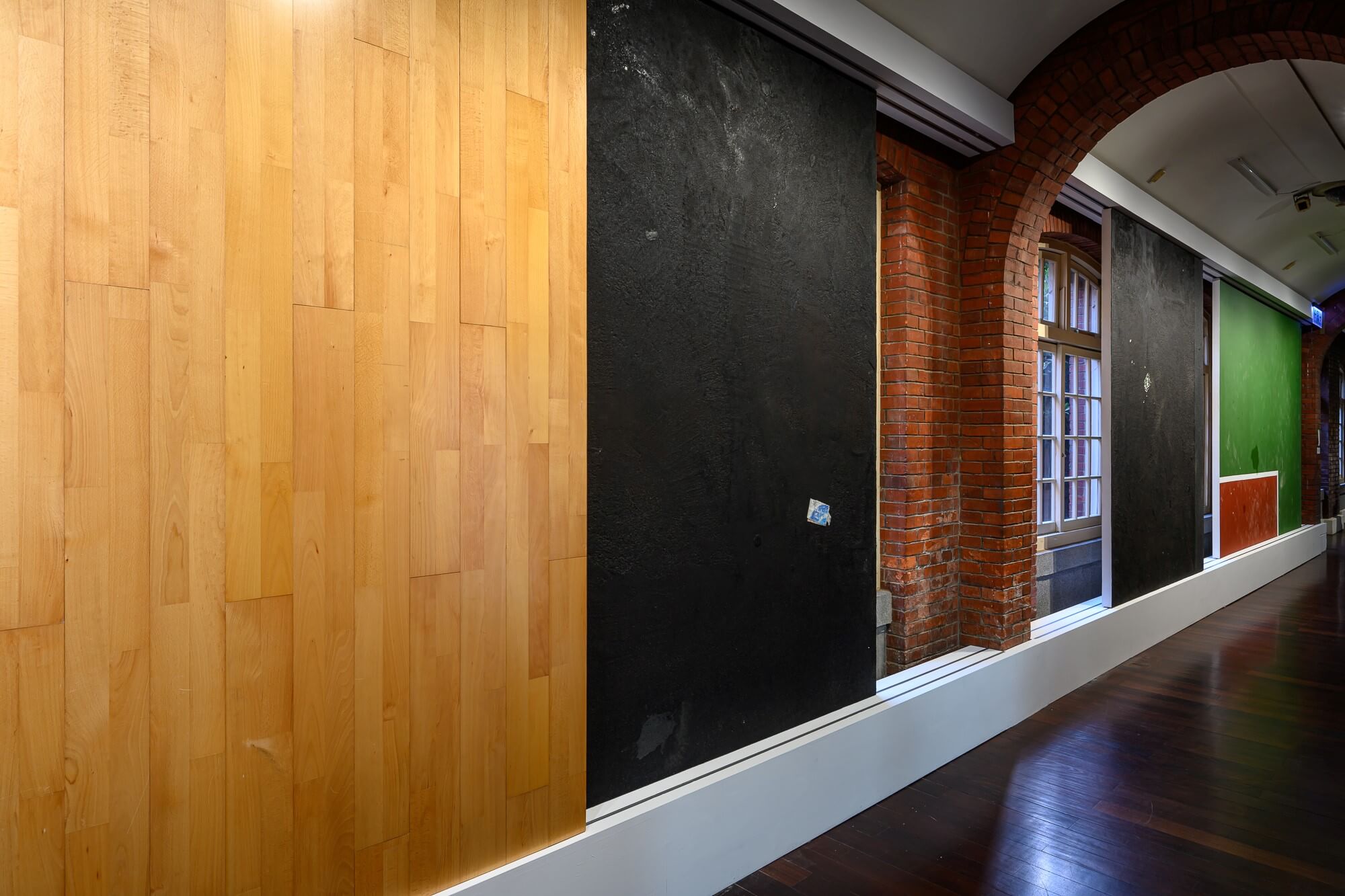 走進展場可以很快察覺,沒有大敘事和過度智識化的文字,也沒有預設的觀看條件。感官因此保有一種未受干擾的敏感狀態,可以直接面對作品本身。此時觀者面對的不是單薄的情緒或美學風格,更像是一種被精心編排的、感性經驗的堆疊。黃彥穎作為策展人,延續他在創作中對語感與時間感的敏銳,將展覽拆解成多個感官場景——有的直接觸及公共經驗,有的則深入到日常與私密之間的模糊地帶。這樣的編排讓觀者在感性經驗之間穿梭時,被導向它們背後的成因與脈絡,而不僅是停留在「感覺很好」的層面。何彥諺的《席地而坐》是其中最直接連結到集體現場的片刻。作品源自藝術家在學運期間的親身經驗,以柏油、木地板、球場地面等材質轉化成牆面與地面,讓觀者以「觸覺」回溯那些群體記憶。策展策略並非以直白的方式著力於政治,而是透過材料與身體的相遇,保留足夠的空白,使觀者在感性經驗中自然觸及那些隱含其中的集體記憶。