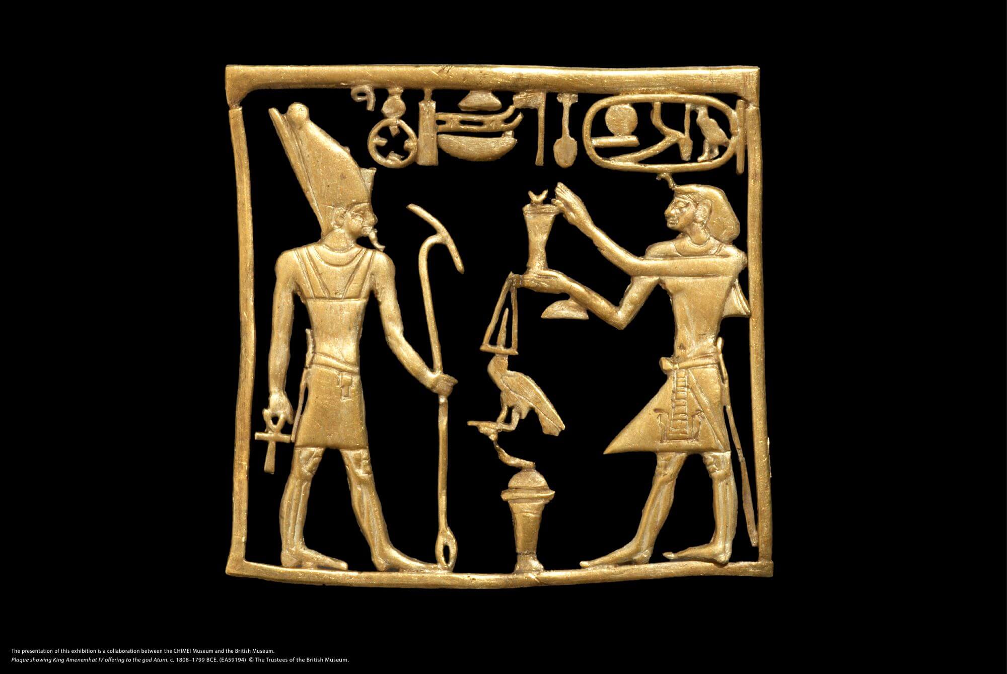 阿蒙涅姆赫特四世向亞圖姆神獻祭的銘牌,約西元前 1808–1799 年。圖/大英博物館理事會。