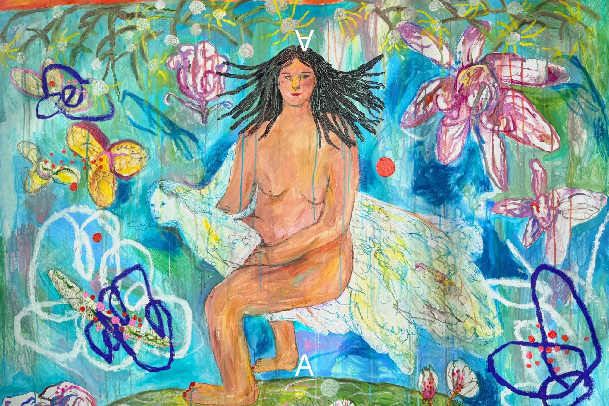 Juli Baker and Summer,〈between us is just a garden〉, Acrylic, solid marker and inktense on canvas, 160 x 140 cm, 2025. 圖/Artemin Gallery