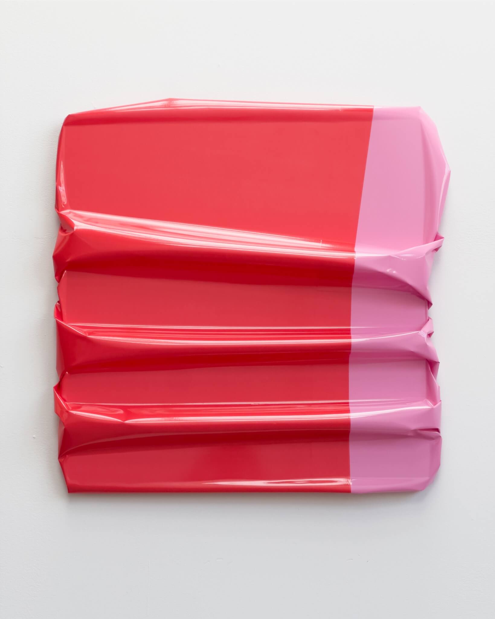 本次關注荷蘭藝術雙人組ROTTEVEEL VERMEER的作品,融合了硬邊藝術(Hard Edge)、色域繪畫(Color-field painting)精神,將平面繪畫的語彙延伸至立體空間。ROTTEVEEL VERMEER是由Jochem Rotteveel (b.1976) 與Thomas Vermeer (b.1984) 於2021年結成,分別來自當代藝術與時尚不同領域的二人,有著對色彩的敏銳感知與共通的協作默契。以乙烯箔片(塑膠箔片)作為媒材,在鋁塑複合板上創作(Dibond),讓色彩與物質的邊界彼此碰撞、共振,映現出抽象繪畫於當代空間中的新可能。在閱讀ROTTEVEEL VERMEER作品時,除了透過「色彩」感知情緒,另值得一提的是,作品本身「摺痕」亦蘊含詩意性的指引。不僅展現箔材的物質性,也成為連結不同色彩的節點,延伸出畫面節奏與情緒張力,成為即興與秩序共存的視覺實驗。