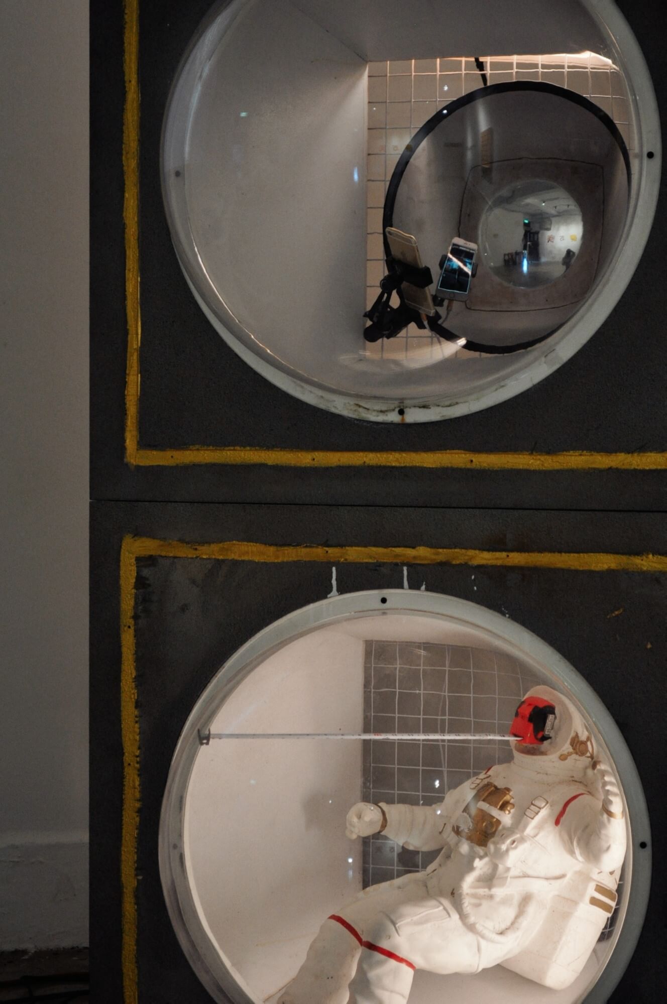 藝術家謝騆瑜以行為藝術錄像演繹清潔工與工具間的互動神話。圖/板橋435藝文特區提供