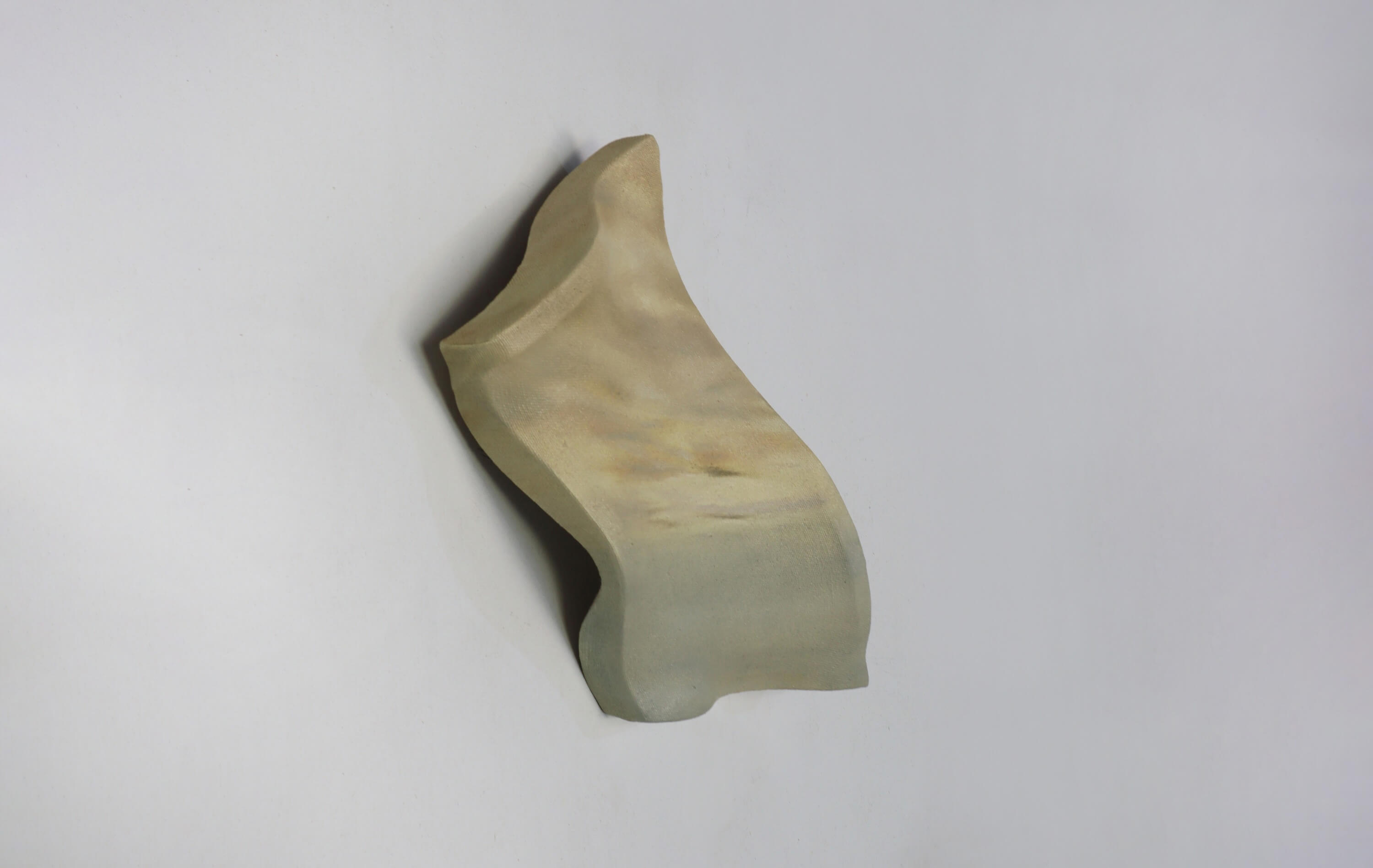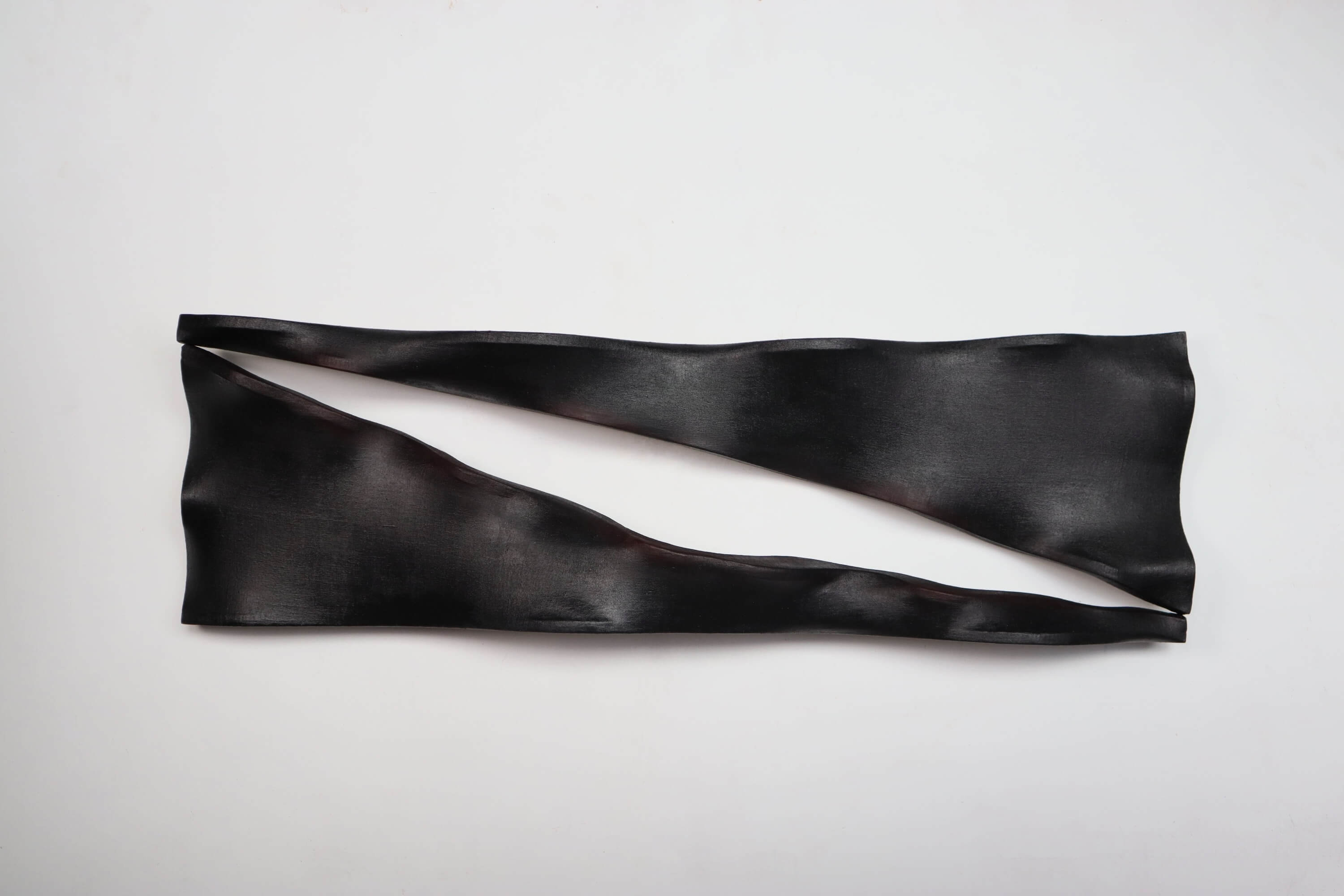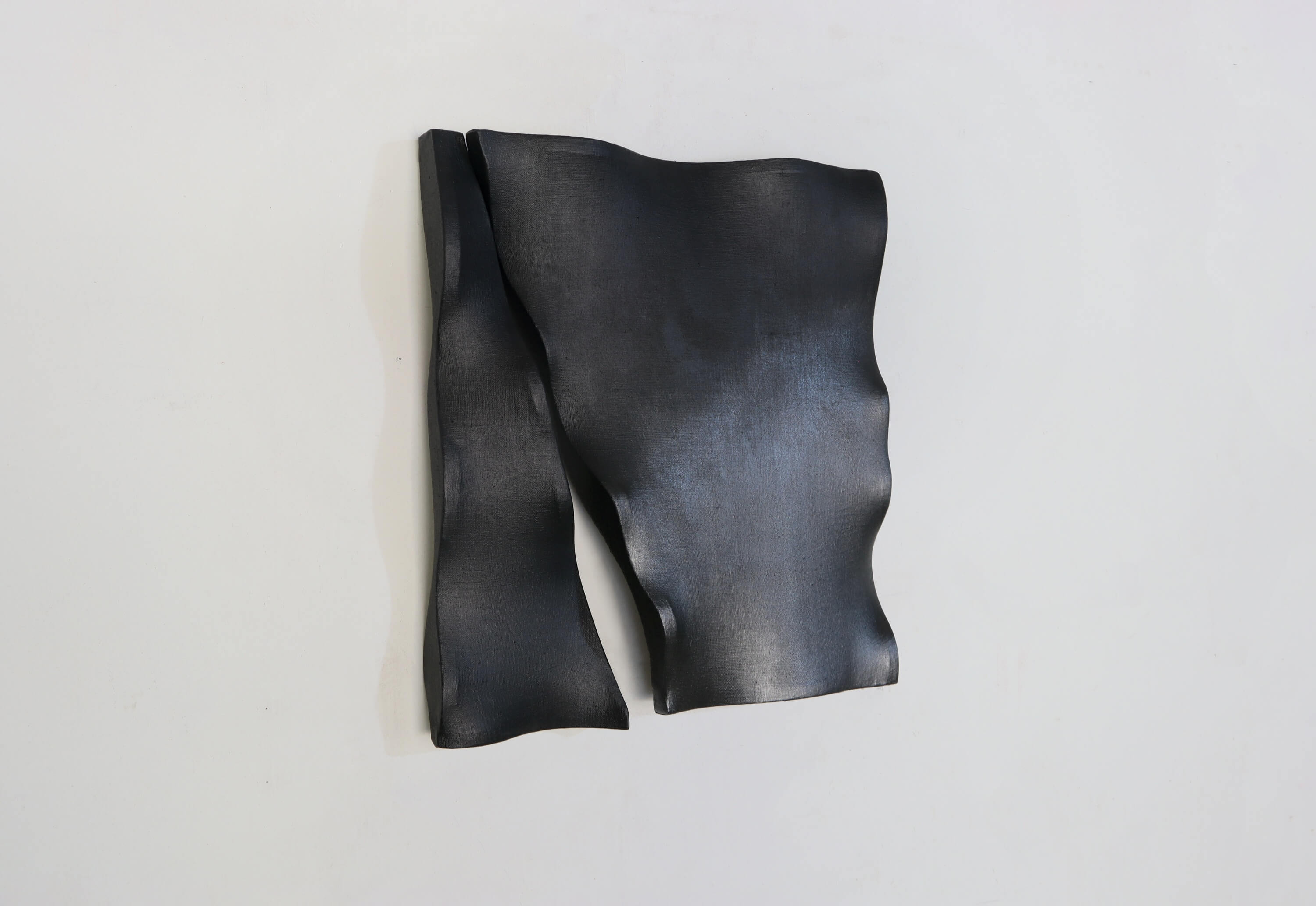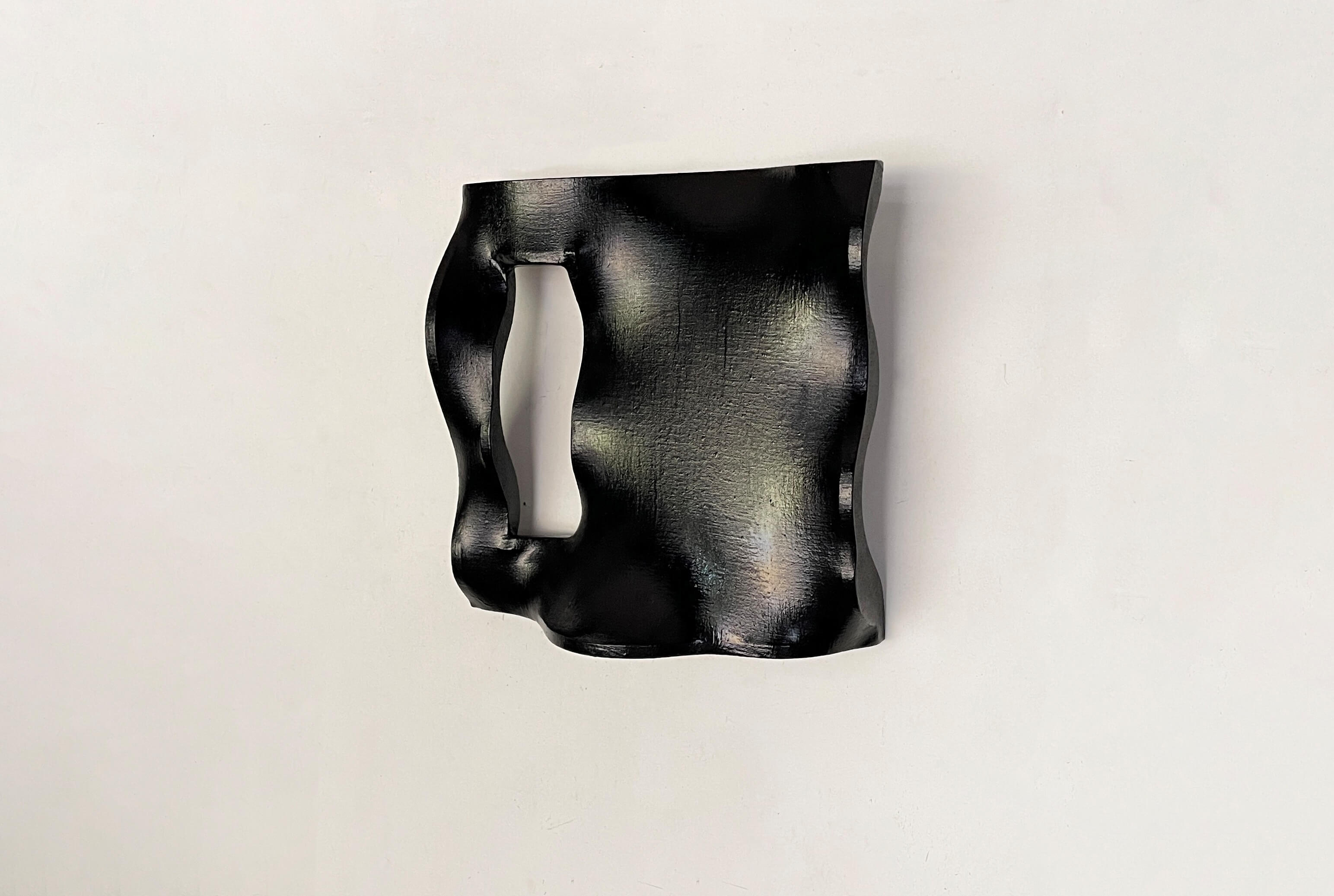 在《靜⾊微光》中,這樣的關注被具體化為⼀種「模糊的語法」。作品以錯位、拼接與流線形構成,彼此之間留下可⾒的縫隙與不確定性,這些空⽩既是界線,也是呼吸。蔡亞克以傳統繪畫媒材為基底,卻以雕塑的⽅式形塑畫布,使之同時擁有繪畫的肌理與雕塑的姿態。光影的推移在作品表⾯形成連續的節奏,如同時間在畫⾯上留下的柔軟摺痕。