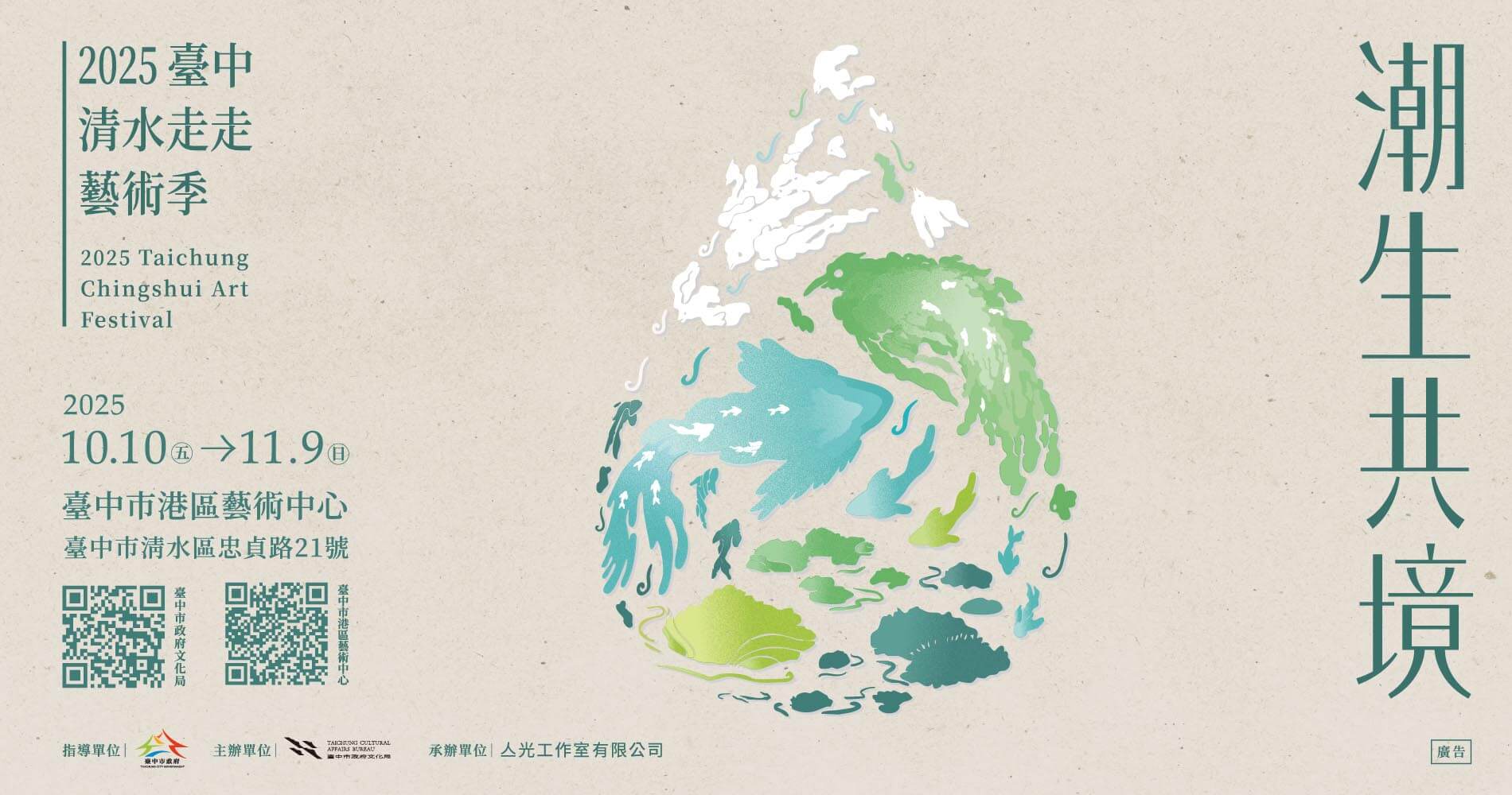 臺中清水的風,永遠是第一個抵達的觀眾。由臺中市政府文化局主辦、亼光工作室策劃的「2025臺中清水走走藝術季」以《潮生共境》為題,從風、土地、海洋與生態四大元素出發,透過藝術裝置與沉浸式體驗,邀請觀眾走入自然的節奏之中。風象徵變遷與能量的循環,揭示人與環境之間的張力;土地記錄濕地的呼吸與時間的堆疊;海洋反映人類行為的影子,而生態則串起地面與天空的生命鏈,見證共棲的微妙平衡。六位藝術家以互動機械、海廢編織、數位投影與聲音裝置回應風、土地、海洋與生態的四重命題,構築出專屬於清水的公共藝術場域,讓作品不再只是靜止的展示,而是深度挖掘清水如何在時間與自然的洪流中,與生命一起尋找共存之道。