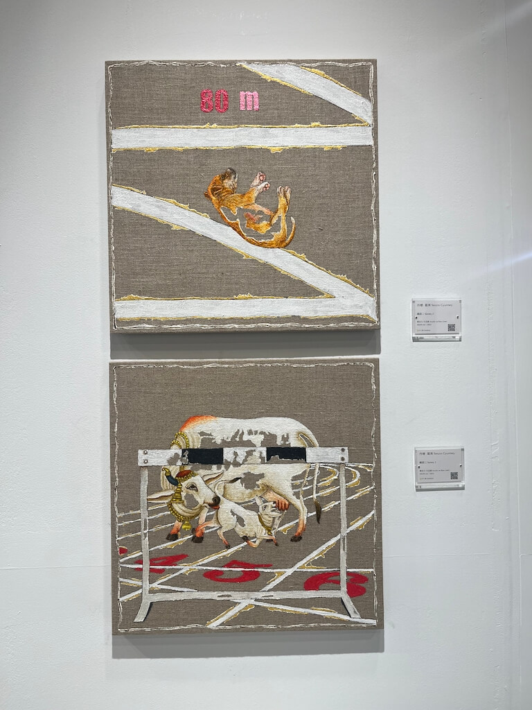 參展藝術家丹增・葛美・多吉( Tenzin Gyurmey Dorjee,b. 1987 )是當代喜馬拉雅藝術界重要的新生代藝術家。他出生於藏文化背景,作品深受從西藏流亡到印度的遷移經歷、文化交錯與記憶片段影響。《 Yarney 》系列作品中,可以看見他對動物題材的多樣發揮,結合動物與運動會兩者元素,引發民族文化與現代生活之間的思考。