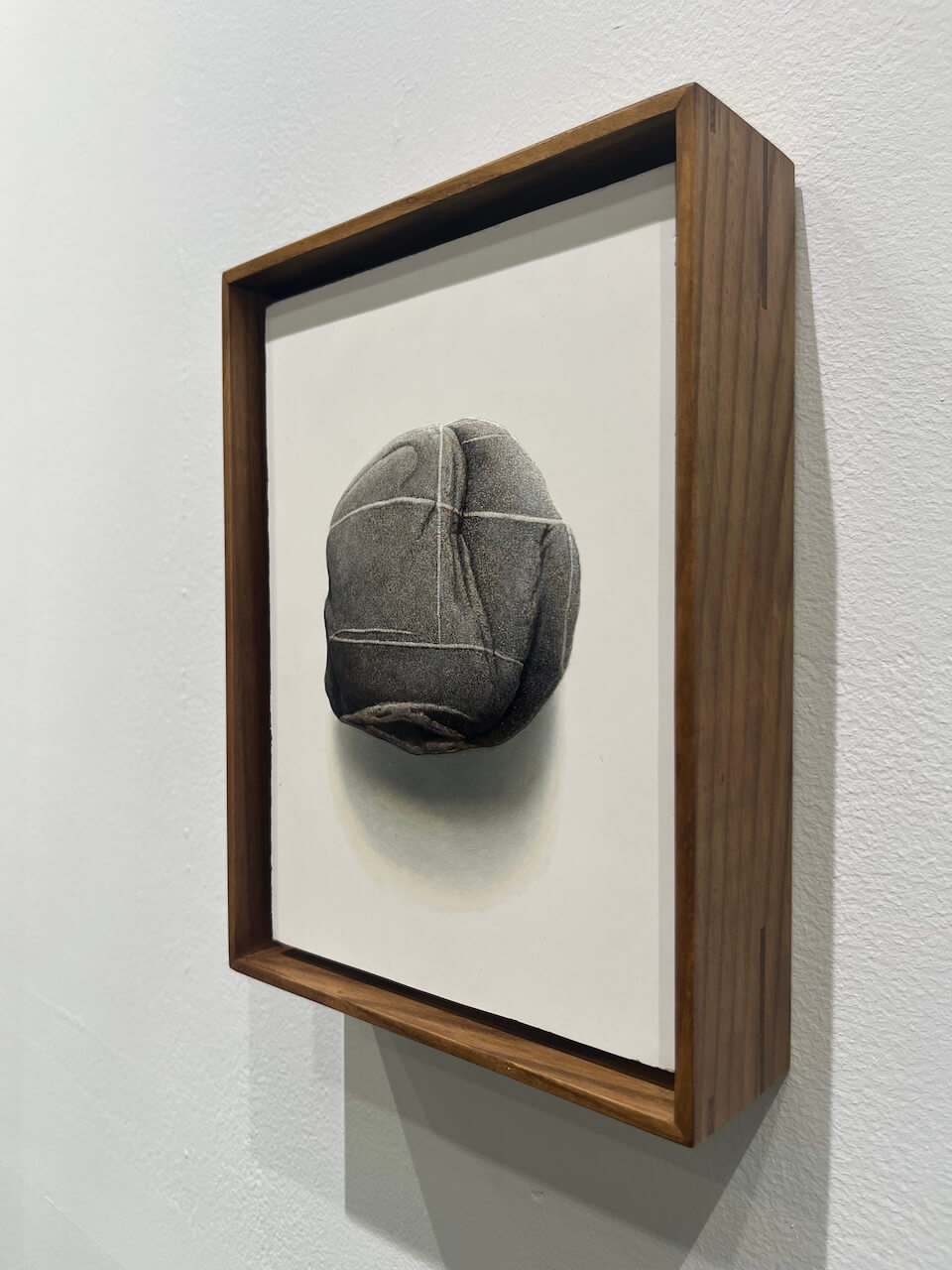 其中之一為臺灣藝術家周珠旺( b. 1978 ),其創作深受南台灣土地與童年經驗影響,長年以「沙」與「石」為核心題材,透過極度細膩的筆觸描繪自然中最微小的物質,呈現時間、記憶與存在的厚度。本次展出作品之一〈吉石〉,以對石頭的精緻描繪回溯他在養鴨場「撿蛋」的勞動記憶,連結故鄉地景與情感,同時寓含收穫與祝福的意象,勾勒出沉靜而有秩序的記憶層次。