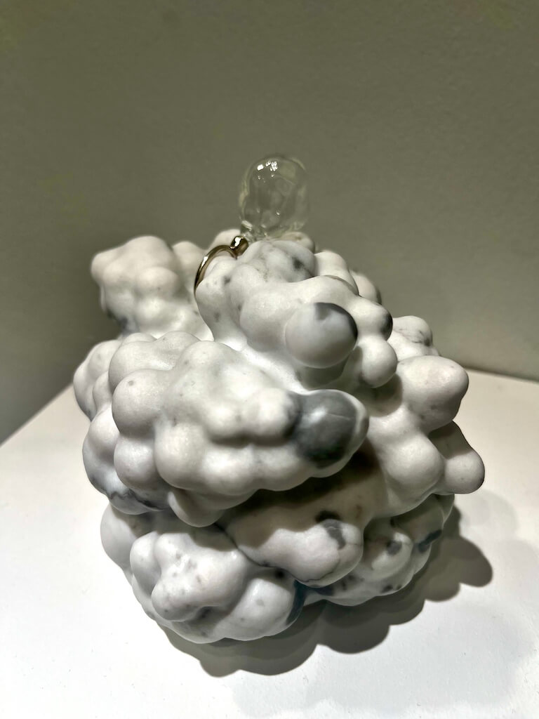 〈靈動—19〉,侯連秦,2025,13.2 × 11.5 × 10 cm,玻璃、銀、卡拉拉大理石。圖/非池中藝術網攝影。