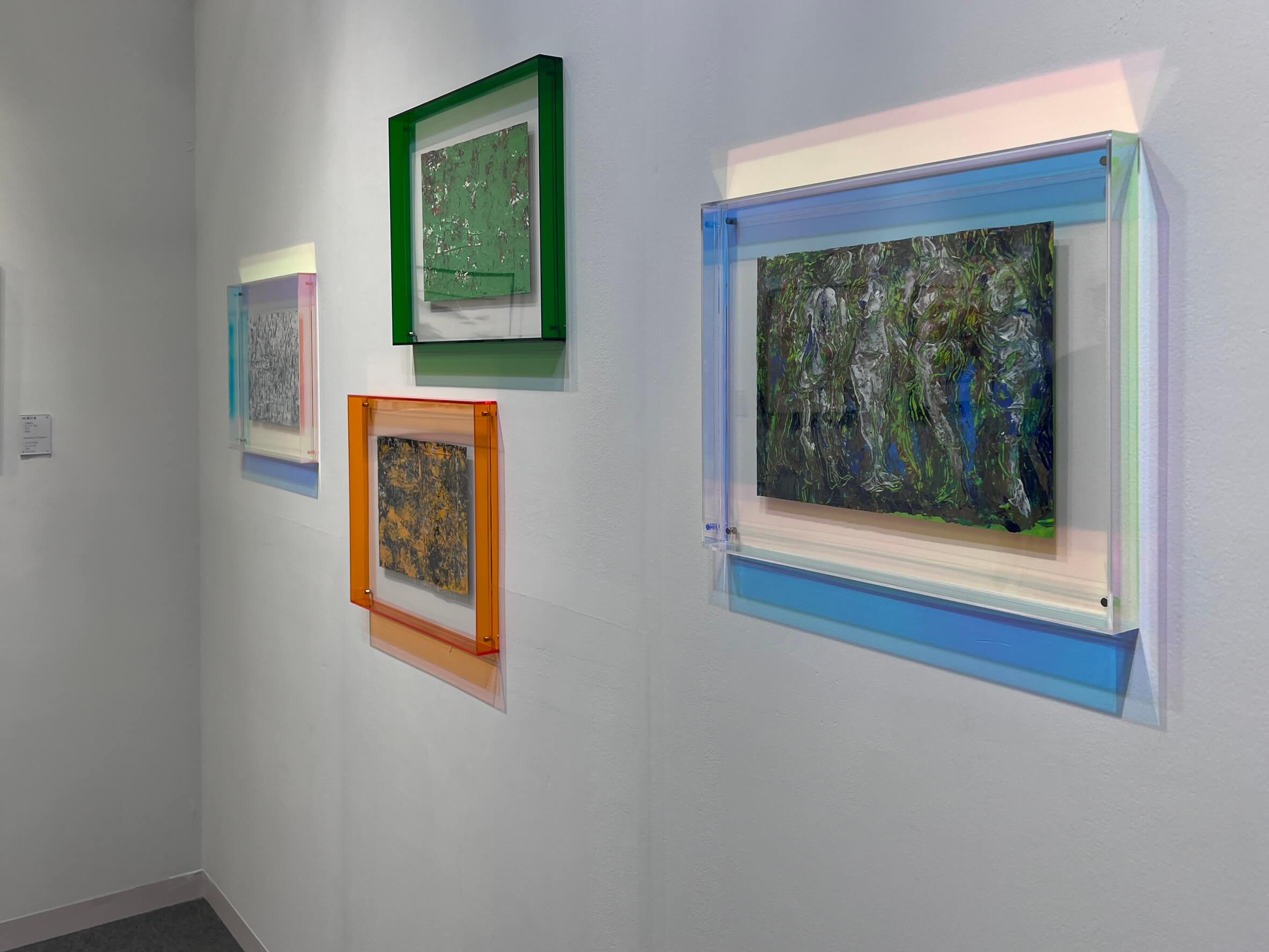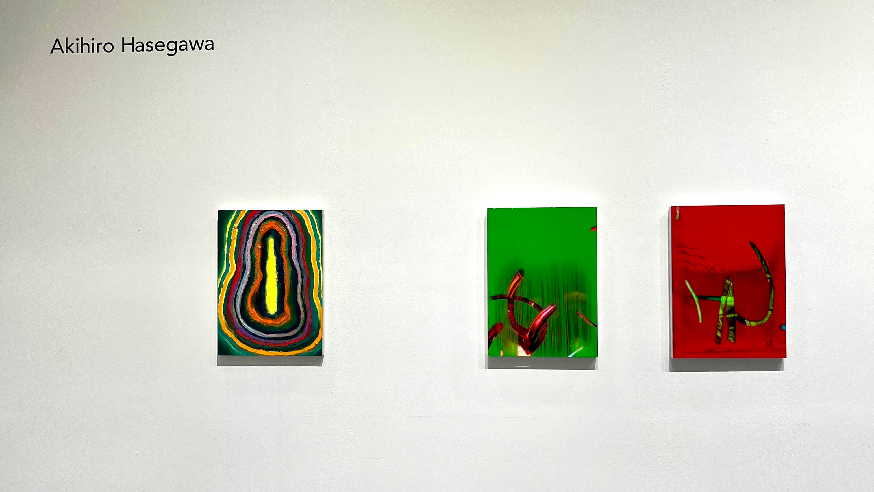 (中、右)〈 Untitled 〉無題, 長谷川章宏( Akihiro Hasegawa ),2025,33 × 24 cm,油彩、壓克力板。圖/非池中藝術網攝影。