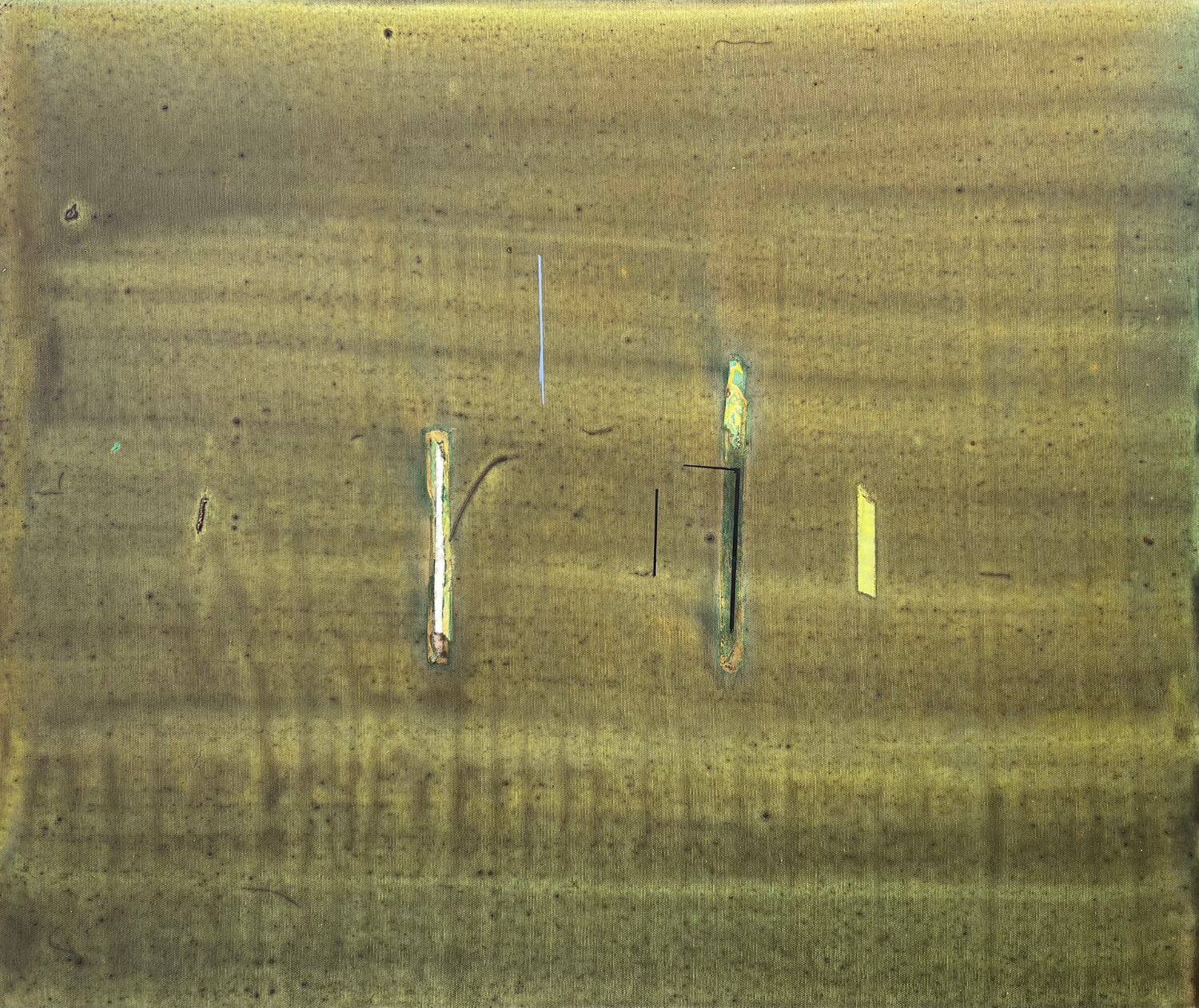林鴻文〈往來於兩個時空的標尺The Measure Between Two Epochs〉,壓克力顏料、畫布 Acrylic Paint, Canvas,73x100cm,2023。圖 / 月臨畫廊提供。
