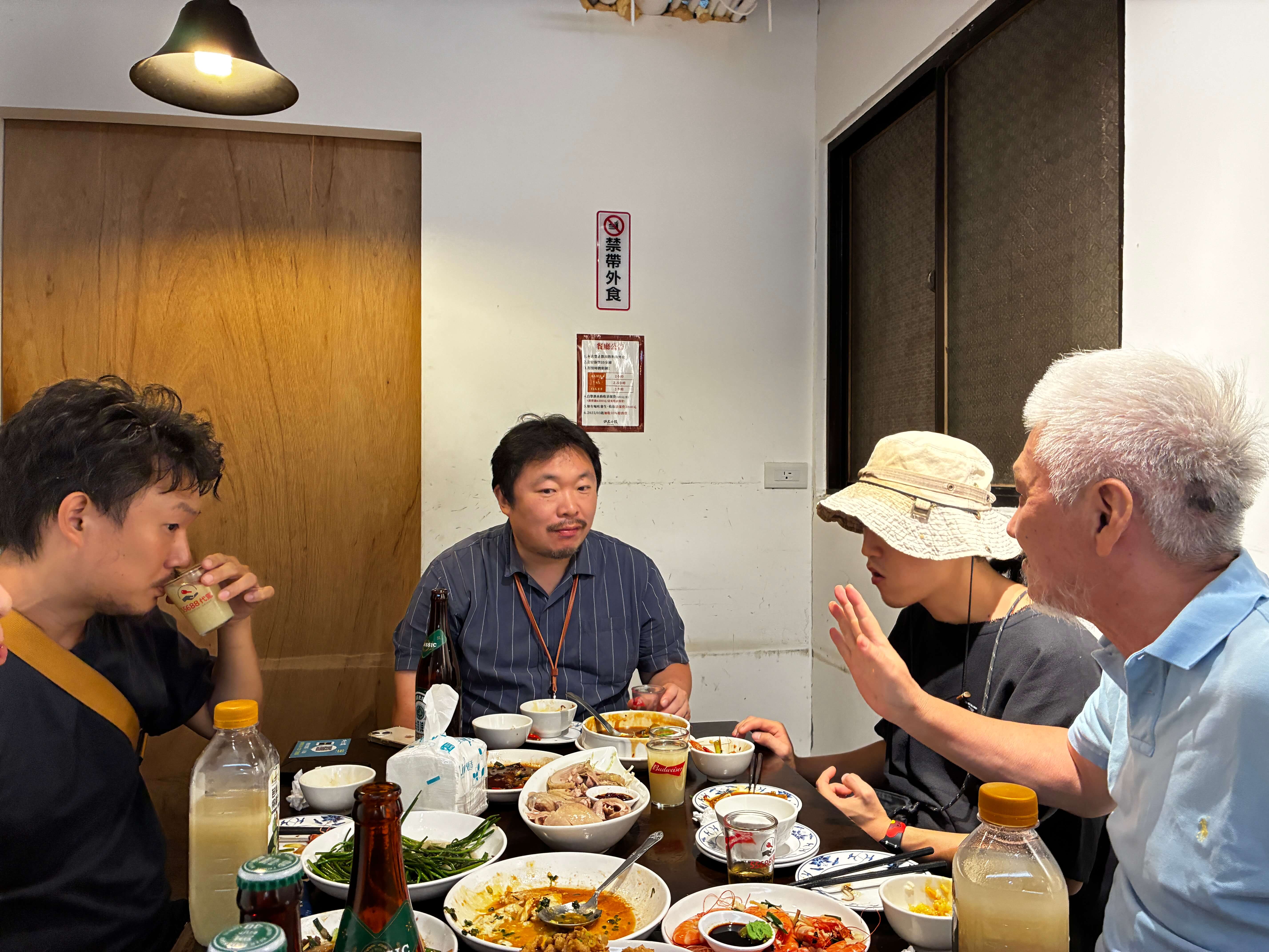 任興淳團隊與策展人姜帝旭、陳晞一同拜訪僅存的基隆韓裔黃阿姨。(攝影|陳晞)