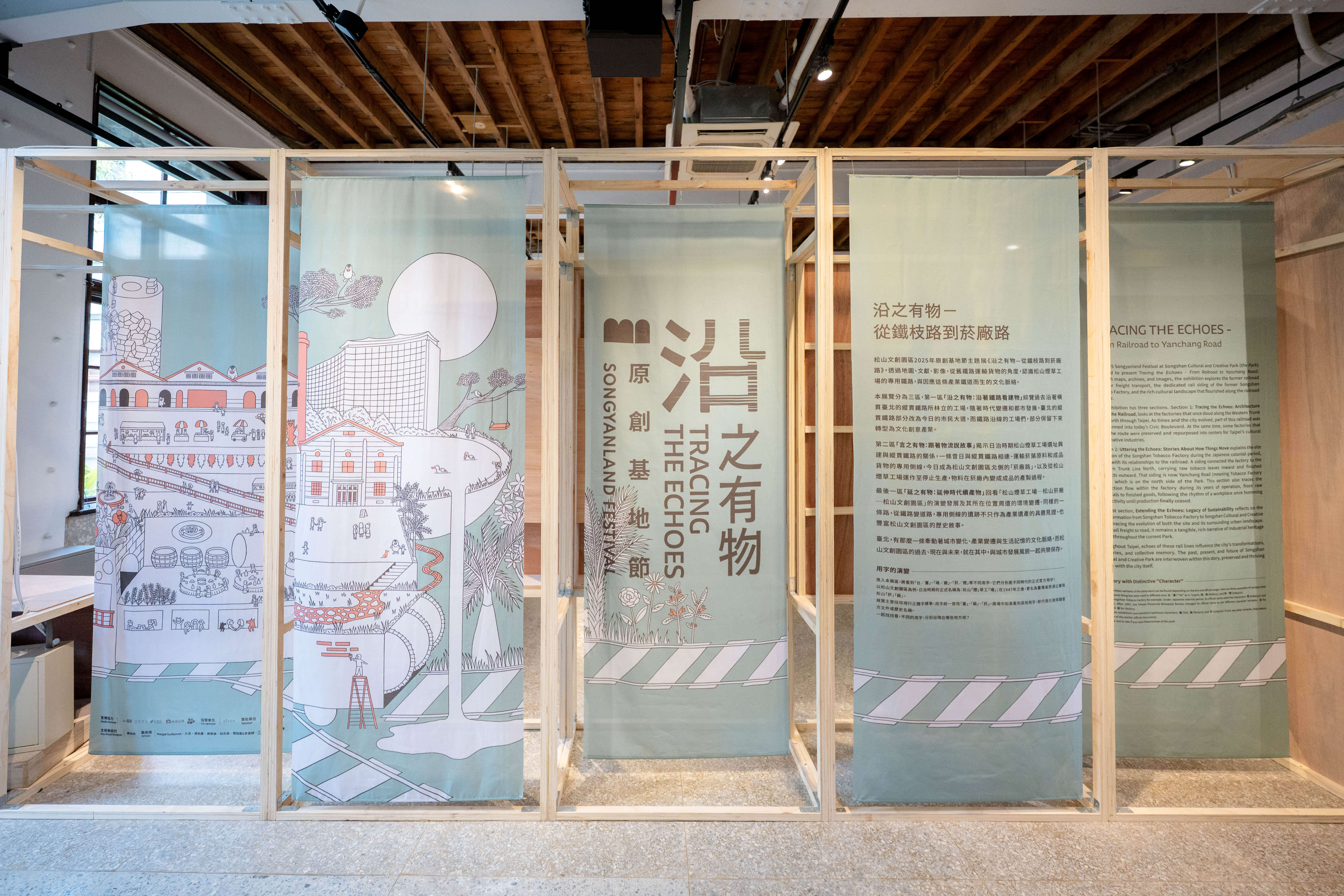 2025年原創基地節室內主題展《沿之有物—從鐵枝路到菸廠路》以「沿之有物:沿著鐵路看建物」、「言之有物:跟著物流說故事」、「延之有物:延伸時代續產物」三大展區搭配歷史地圖、文獻、昔日照片及老員工訪談影像等珍貴展件,依序呈現松山菸廠轉型至松山文創園區的蛻變歷程。展覽首先帶領民眾回到過去,自百年前鋪設的縱貫鐵路啟程,見證臺北從農田轉為工業區的過程;步入日治時期松山煙草工場落成後的時光,重現「物」與「人」緊密交織的故事,包含當時菸葉進入製菸工廠的動線規劃、員工的菸廠記憶等;第三展區能見證轉型後的松山文創園區迎來新的起點,並邀請民眾寫下印象中的松菸,拼湊出屬於松菸與臺北城市的共同記憶。