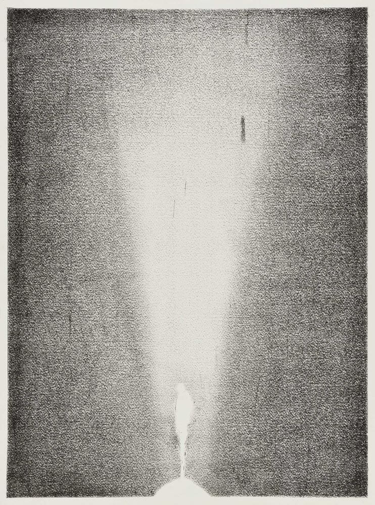 這趟旅程,他在巴黎與里斯本共創作出上百張小作品,就像旅人的日記,其中約八成的作品在里斯本完成,特別是那些浸潤老城明透氣息的淺灰及彩色系列。江賢二以油畫棒( Oil Stick )刷在粗糙的紙面,產生砂紙磨過的膠片質感,細膩捕捉著光的顫動。展覽期間,將不定期更換該系列作品,為重返的訪客帶來些許新鮮感。