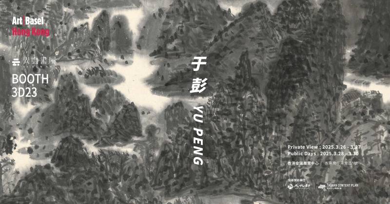來自台北青田街的畫廊「異雲書屋」將於 2025年 巴塞爾藝術展香港展會展出藝術家于彭的個展,特別鎖定于彭創作生涯中期之 1997-2002年間 的精彩創作,這段時期除了為人所熟知的,曾在 2019年 臺北市立美術館「于彭:行者.天上.人間」展覽中呈現的大型水墨連作,亦有許多愈趨成熟的作品,並且富有此一時期的獨特創作語彙,如:「狹長的構圖,巨大的尺幅,綿密的線條,滿幅的畫面。」(註1),延續早年的素描功底與對古典筆墨的研究,融入生命經歷,使畫面充滿強烈的敘事感與詩意氛圍,從而令于彭筆下的山水、人物與景物交織出一種遊離於真實與奇幻之間的境界。