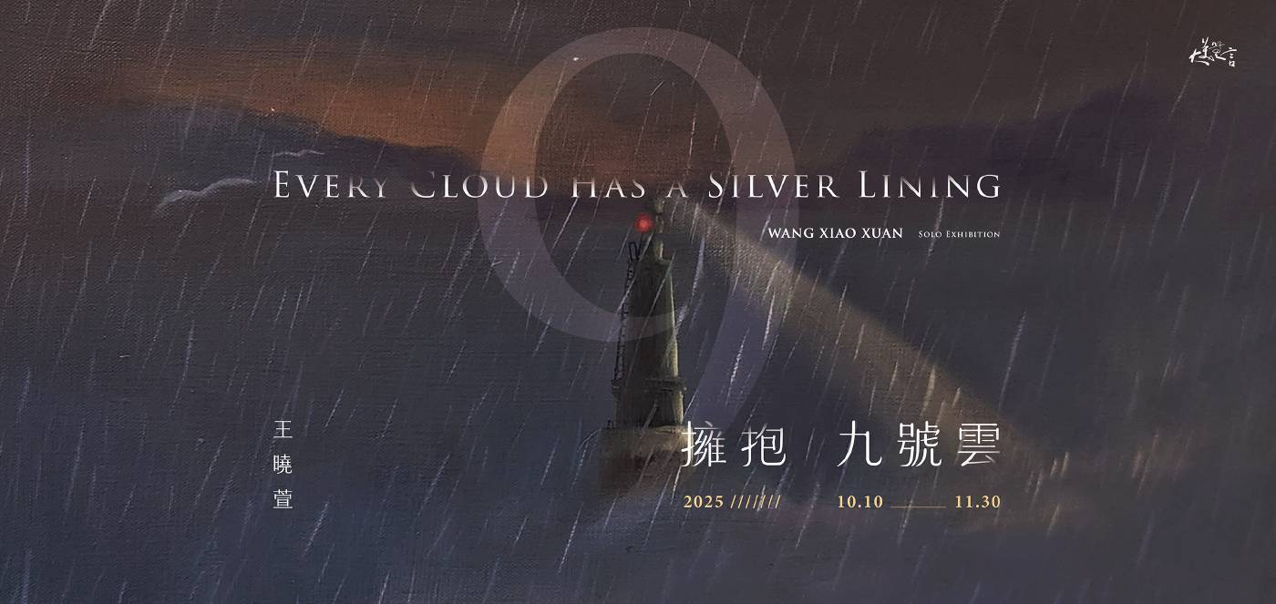 本次展覽以「雲」作為介於遮蔽與顯現之間的符號,透過藝術家個人情緒的探索與外在環境的呼應,轉化為一幅幅不只是對自然風景在線的作品,也正如作者自身在雲上、雲中、甚至雲層底下的片刻心境與旅途經歷,每件作品中都乘載著情感的隱喻。孤寂與寧靜並存,低沉與希望交織,Every Cloud Has a Silver Lining(每朵雲都有一道銀邊),寓意即使烏雲再濃,背後依舊隱藏著光亮與轉機,在平凡的日常裡,那些突如其來的暴雨,都是生命歷程的一部分,當下我們只需要好好接住自己。