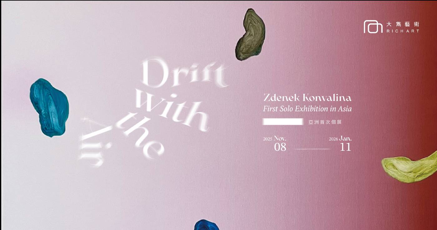 Rich Art Gallery is pleased to present Czech artist Zdenek Konvalina’s first solo exhibition in Taiwan, Drift with the Air, on view from November 8, 2025 to January 11, 2026. Konvalina constructs a fluid realm between reality and perception through painting and installation. Here, “breath” becomes a metaphor for time and existence—a rhythm of gathering and release, motion and stillness—that permeates the exhibition and forms a continuous, organic cycle. Deep tones condense like an inhale, while soft gradients dissipate like an exhale—deep tones for inhale, soft fades for exhale. Each brushstroke and layer of pigment carries the cadence of breathing, making the exhibition itself feel like a complete cycle of breath.