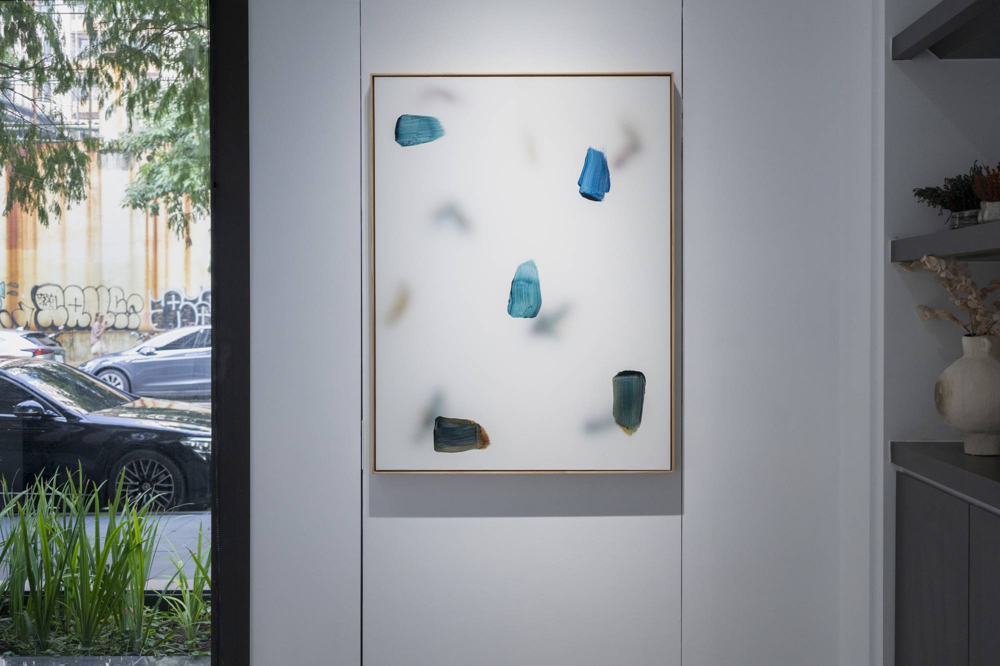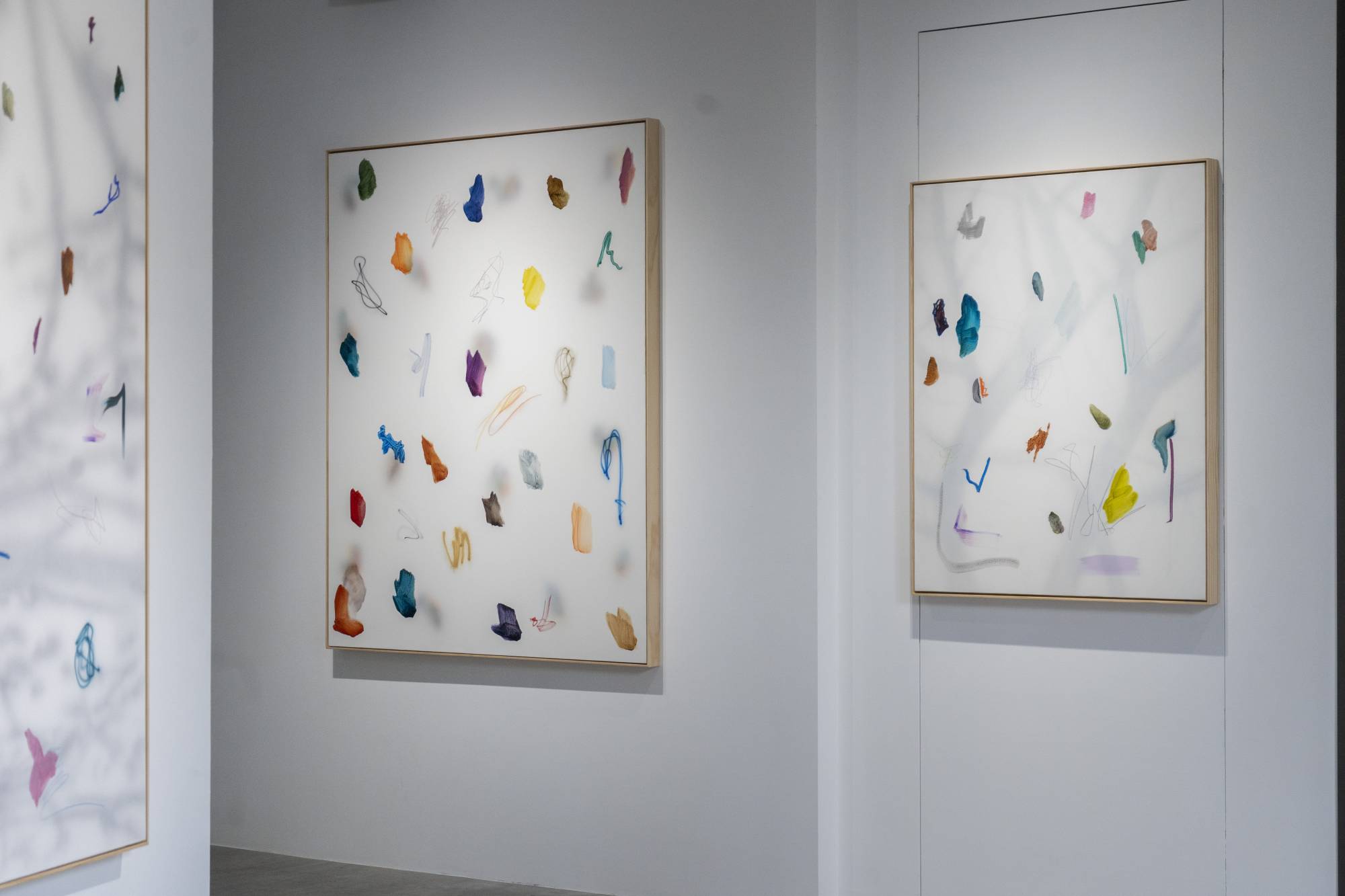 The works derive from Konvalina’s embodied memory as a former dancer and his heightened sensitivity to movement. Layered abstract surfaces, shadows of trees reflecting natural light, and site-specific installations unfold the continuity of breath and the pulse of life in the interplay of light and time. The exhibition space, too, becomes a living body: shifting veils, flowing light, and deliberate intervals between works allow visitors to sense the breathing of space as they drift and move through it. The works resonate with one another and with the surrounding environment, forming an organic circulation where viewing transcends rational observation and becomes an embodied, emotional experience. Time expands, space gains depth, and visitors find themselves attuned to the slow rhythm of the exhibition.