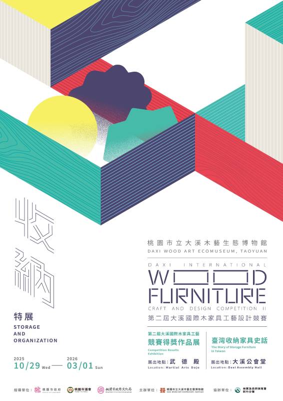 競賽得獎作品將於大溪武德殿展出,搭配本屆競賽主題,另規劃「臺灣收納家具史話」特展於大溪公會堂展出。收納家具不僅是日常必需品,從中也可看到社會和產業發展變遷,本特展以「早期民居的收藏智慧」、「外銷國際的精緻木藝」和「當代創意收納設計」三大主題,並邀請不同時期代表性家具品牌展出,看到百年來臺灣收納家具的變化。 -